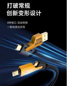 跨境240w磁吸扁线 双typec收纳线PD伸缩数据线适用苹果安卓充电线