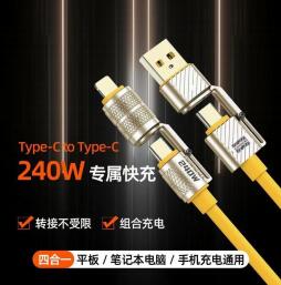 跨境240w磁吸扁线 双typec收纳线PD伸缩数据线适用苹果安卓充电线