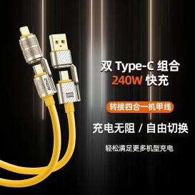 240W快充磁吸扁线双Type-C硅胶数据线适用苹果17华为快充数据线